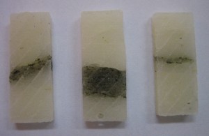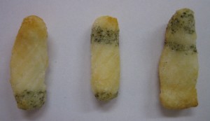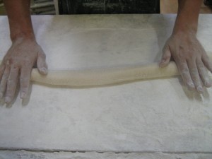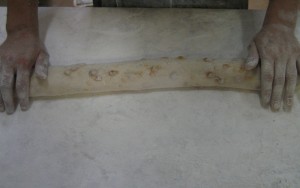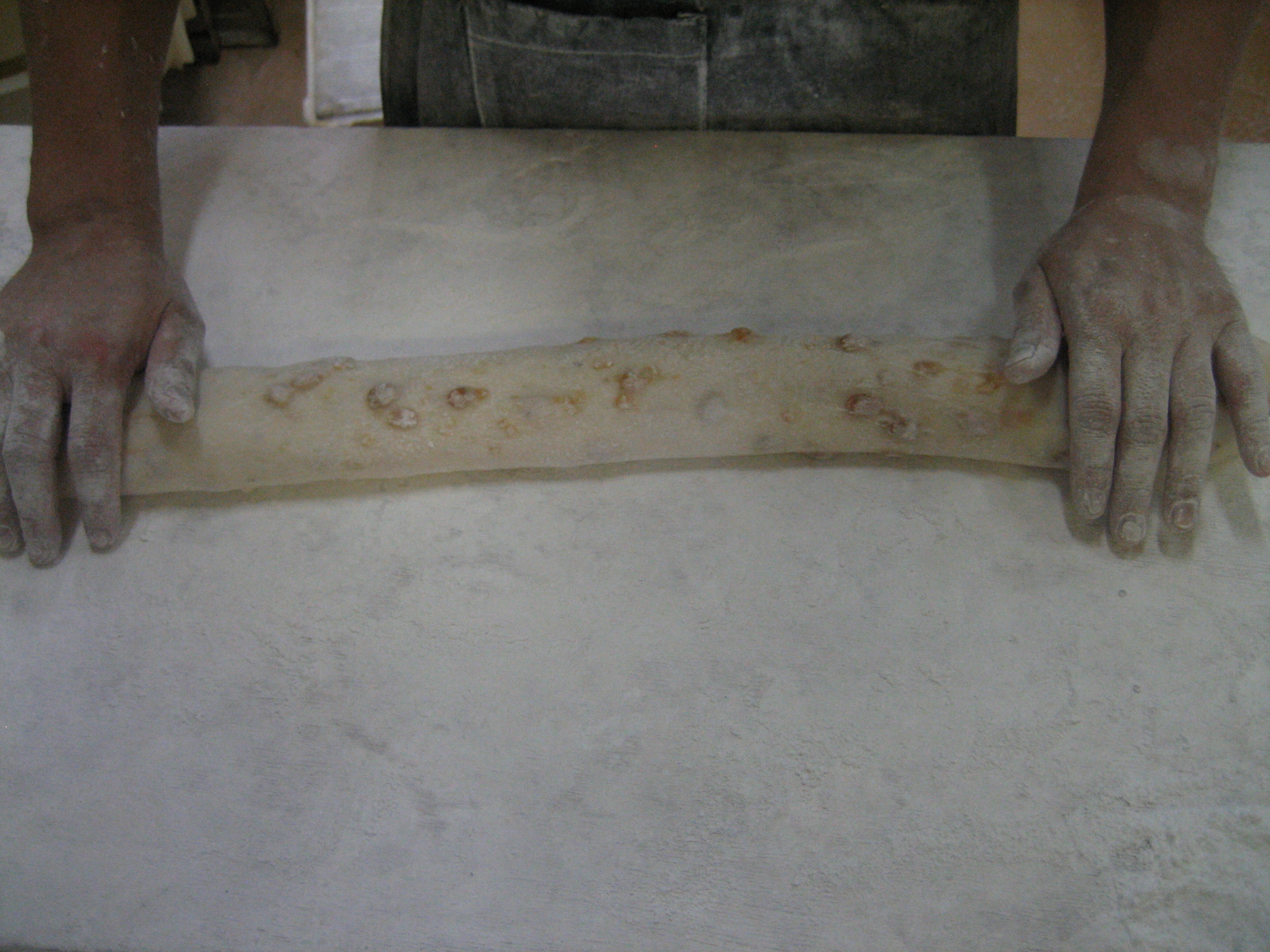 <生地> 斜めに入った 細かいヒビが見えますか? 焼くと ねじれていきます