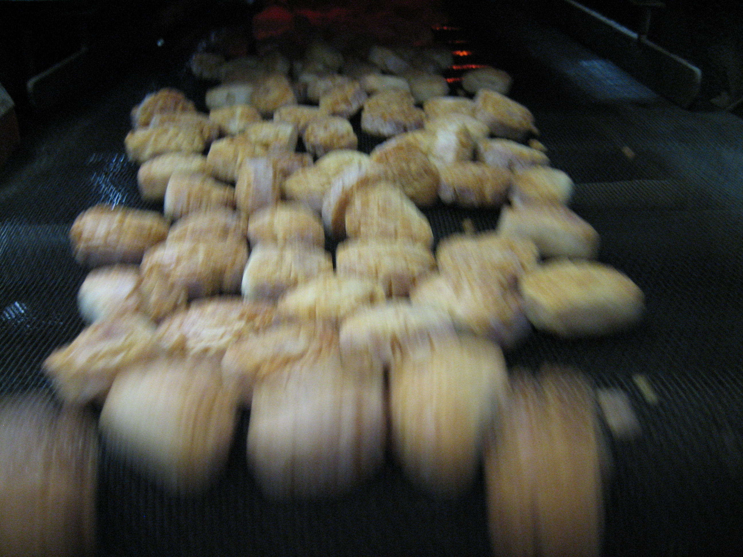 当社は 丸粒で餅をついているので(微妙な調整) 割れない厚焼ができます