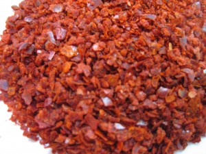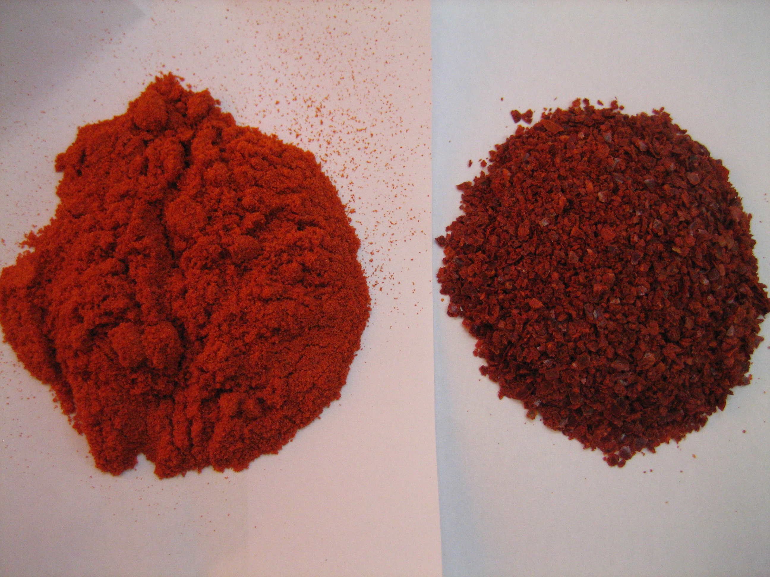 細かい唐辛子 : 荒い唐辛子 = 1 : 4 の割合