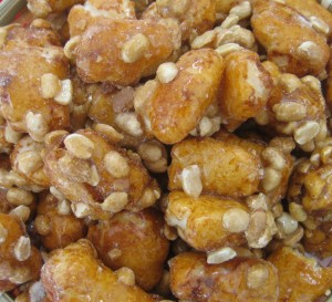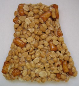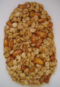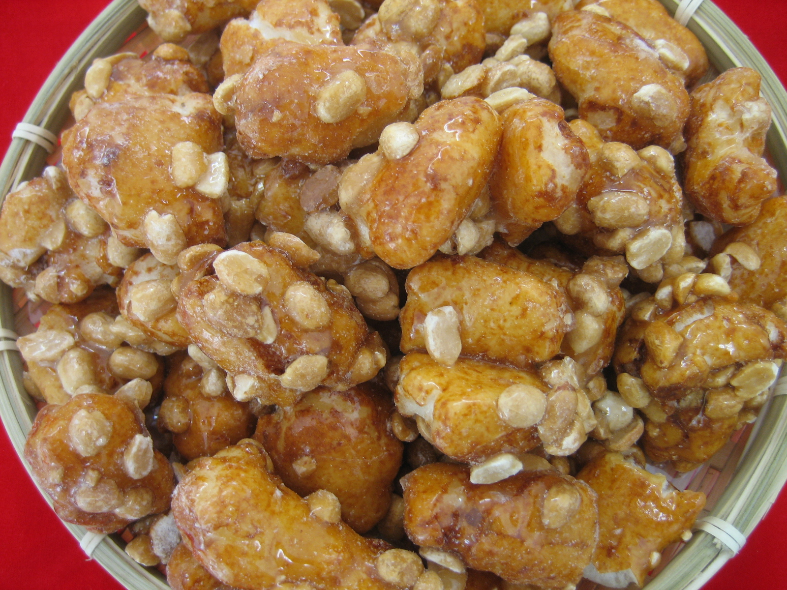 ぷっくりとした 醤油味のあられに 落花生がからんでいます