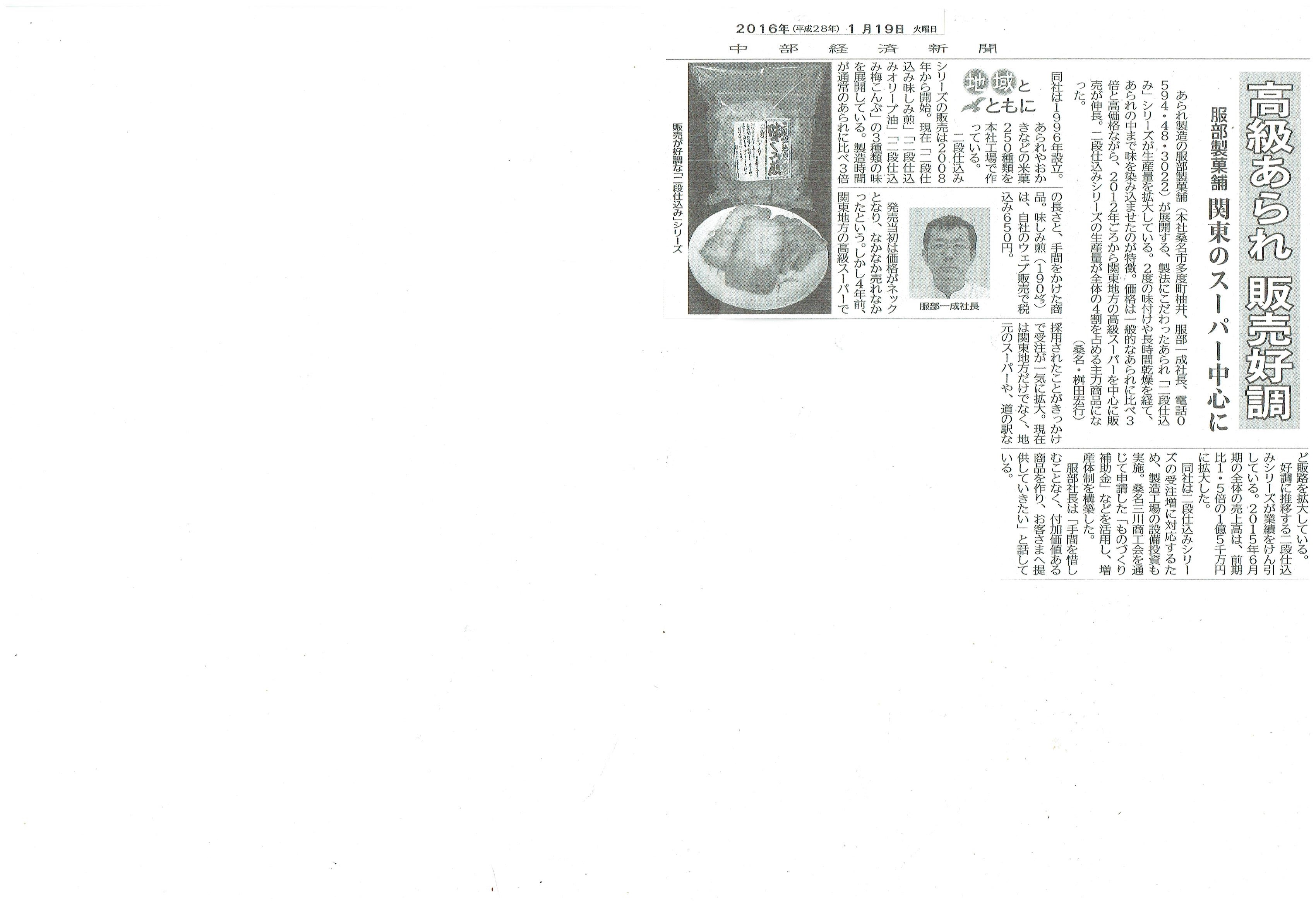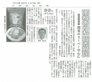 1/19付 中部経済新聞に 掲載されました