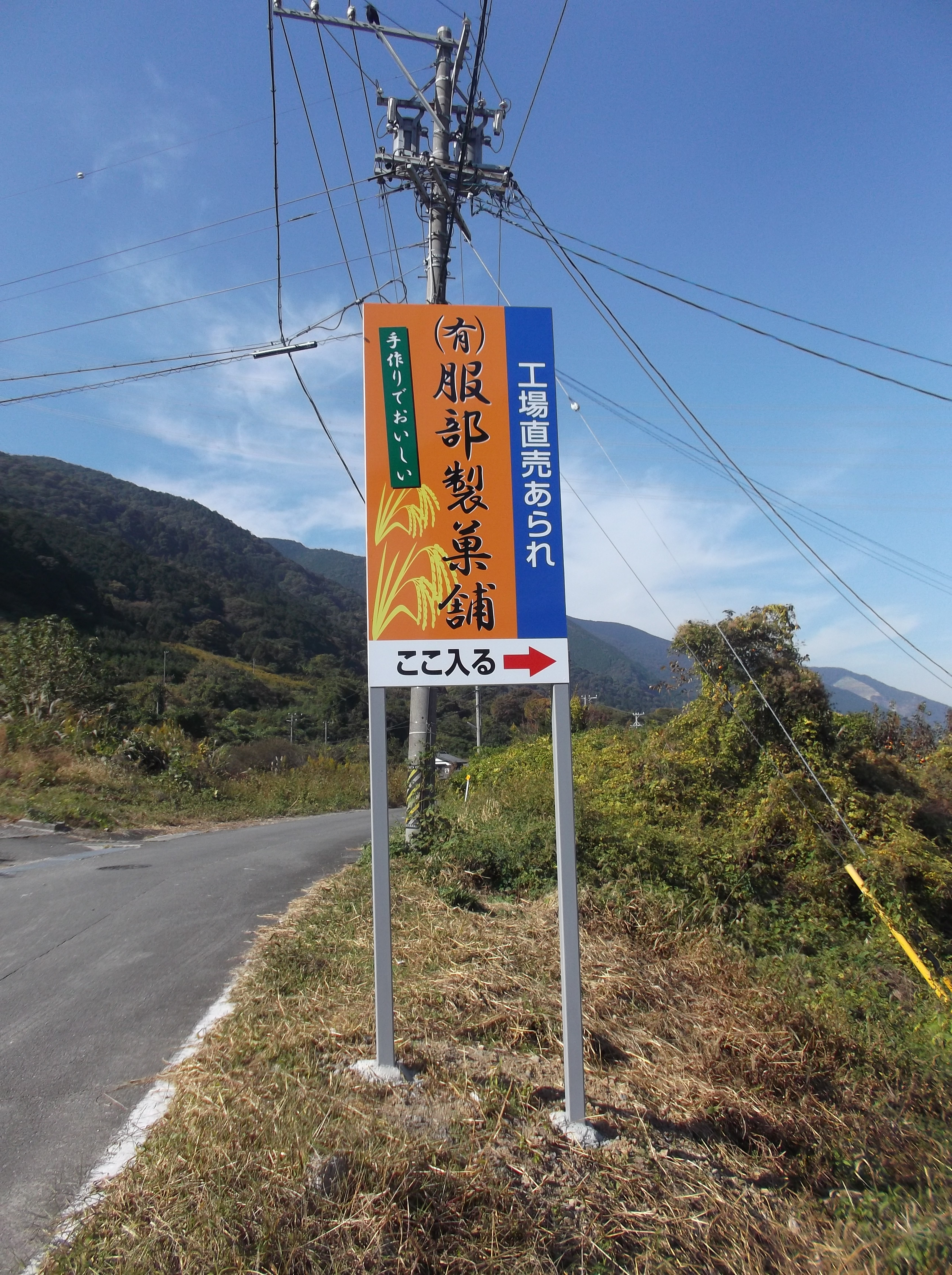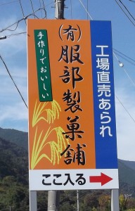 服部製菓舗へ お越しいただけるように 看板を設置しました
