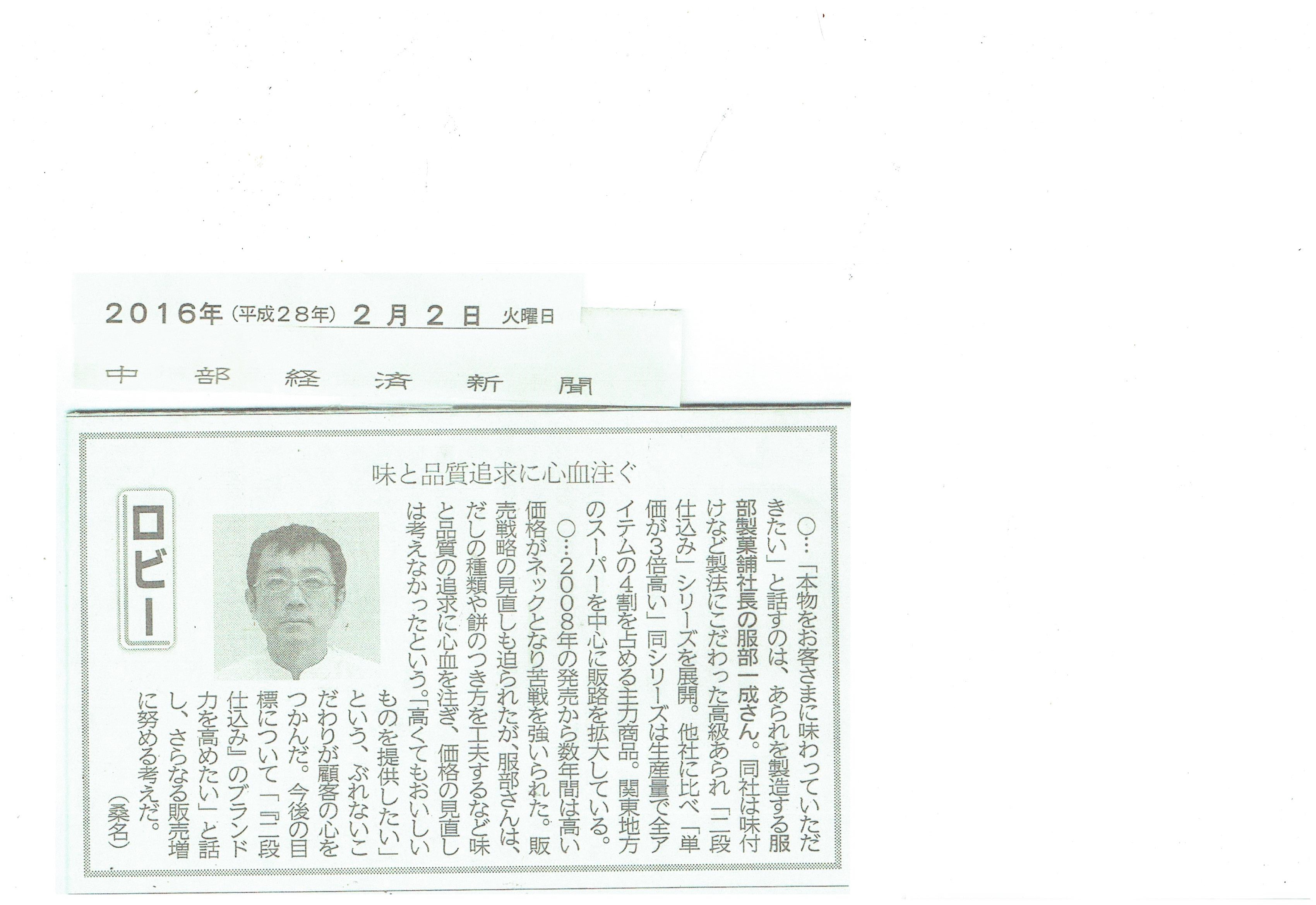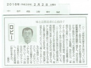 2/2付 中部経済新聞に 掲載されました